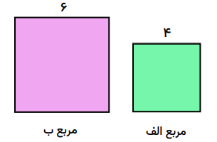 نسبت مساحت مربع الف به مساحت ب را بنویسید و در صورت امکان آن را ساده کنید.