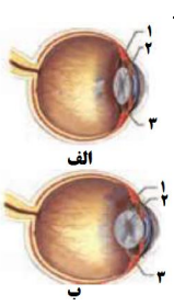 ج) اگر در شکل «ب» تصویر روی شبکیه تشکیل نشود، چشم دوربینی است یا نزدیک بینی؟