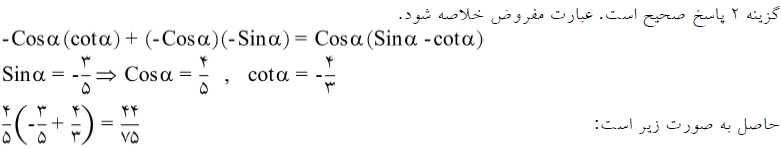 اگر $\sin \alpha =-\frac{3}{5}$ و انتهای کمان $\alpha $ در ربع چهارم باشد، حاصل زیر چقدر است؟