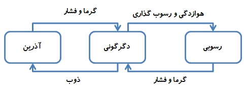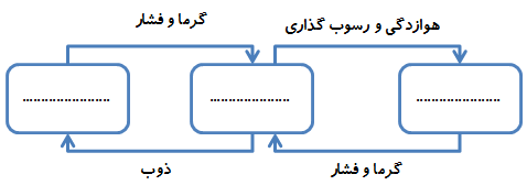 در نمودار زیر عواملی که باعث تغییر شکل انواع سنگها میشوند، نشان داده شدهاند. جاهای خالی را با نوع مناسبی از سنگها کامل کنید.
