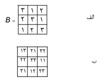 الف) با تعویض جای سطر اول و سطر سوم یک مربع لاتین دیگری بهدست آورید و آن را B بنامید.