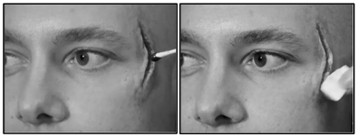 در اجرای طراحی چهرهٔ زیر، بهتر است چهره پرداز از کدام مواد استفاده کند؟
