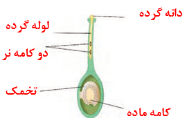 ب) اجزای مادگی در حال گرده افشانی را مشخص کنید.