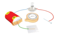 در شکل زیر به جای میخ، چه وسیلهای قرار دهیم، تا لامپ روشن شود؟ چرا؟
