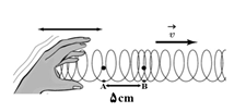 شکل زیر تصویری لحظهای از ایجاد نواحی جمعشدگی و بازشدگی در طول یک فنر بلند کشیده، هنگام انتشار موج طولی سینوسی را در فنر نشان میدهد. اگر تندی انتشار موج در فنر 10m/s باشد، بسامد چشمه موج چند هرتز است؟
