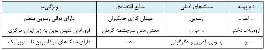 در رابطه با پهنههای زمین ساختی ایران، جدول زیر را کامل کنید.