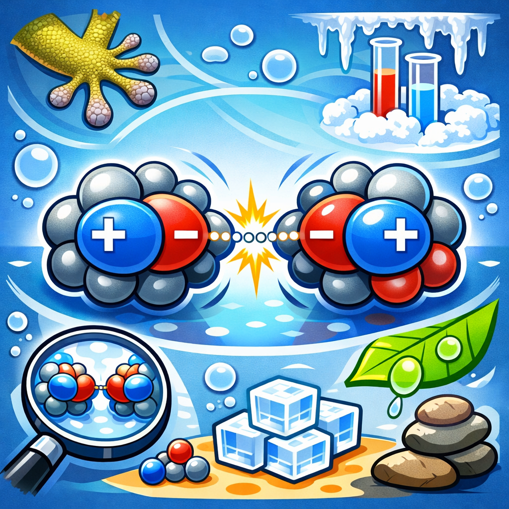 نوع ویژه‌ای از نیروی دوقطبی-دوقطبی قوی که وقتی رخ می‌دهد که هیدروژن به اتم‌های بسیار الکترونگاتیو (مانند F، O، N) متصل باشد. آب، DNA، پروتئین‌ها، آمونیاک ($NH_3$) قوی‌ترین در این دسته