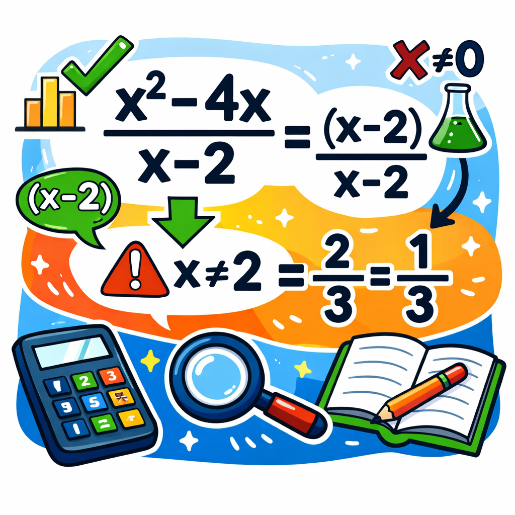 | 3 | حذف عامل مشترک (با در نظر گرفتن دامنه) | $\frac{x-2}{x}$به شرط $x\neq 0, -2$ |