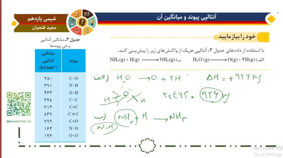 جواب خود را بیازمایید صفحه 68 شیمی یازدهم؛ آنتالپی پیوند