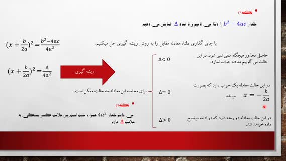 ویدیو ادامه مرور و حل تمرین مبحث معادلات درجه دوم ریاضی و آمار (1) دهم انسانی