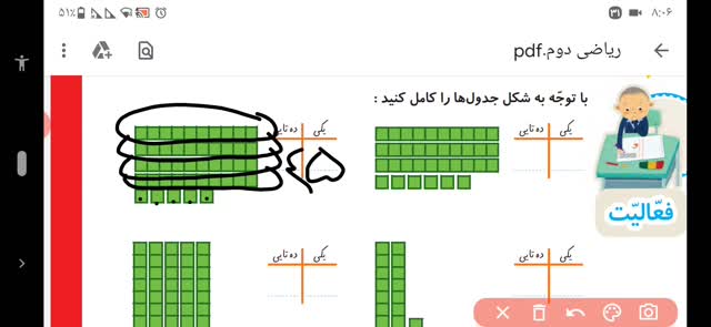 پاسخ فعالیت دستههای ده تایی و یکی صفحه 5 ریاضی دوم دبستان