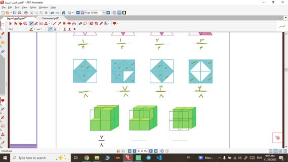 حل صفحه 47 کتاب درسی ریاضی سوم دبستان | نوشتن کسر برای شکل و محور