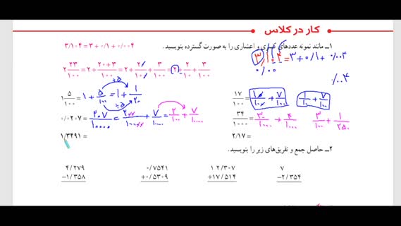 فیلم حل کار در کلاس صفحه 46 ریاضی ششم؛ گسترده نویسی کسر و اعشار