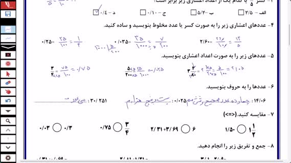 فیلم حل نمونه سوال فصل 3 ریاضی ششم؛ اعداد اعشاری