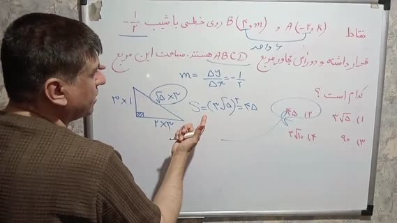 رابطه بین شیب قطر مربع و اندازه اضلاع آن