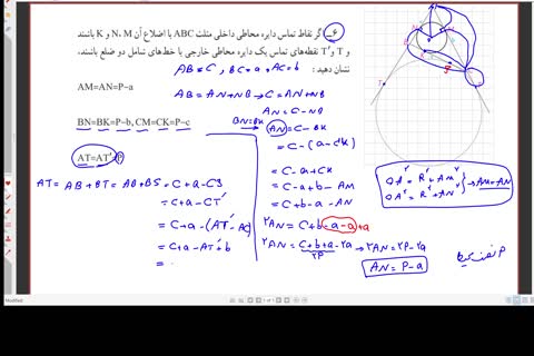حل تمرین هندسه 11؛ ویژگیهای نقاط تماس دایره محاطی