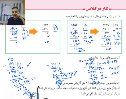 حل کار در کلاس و فعالیت صفحه 53 ریاضی ششم: یادآوری تقسیم فرایندی
