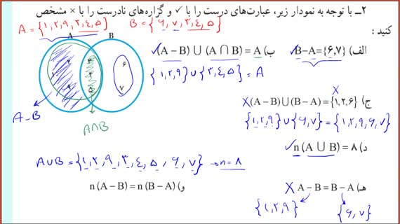 حل نمونه سوال درس 1 و 2 فصل مجموعه