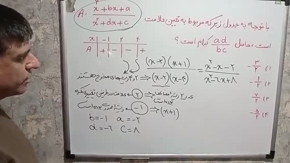 یافتن ضرایب مجهول یک عبارت کسری با جدول تعیین علامت