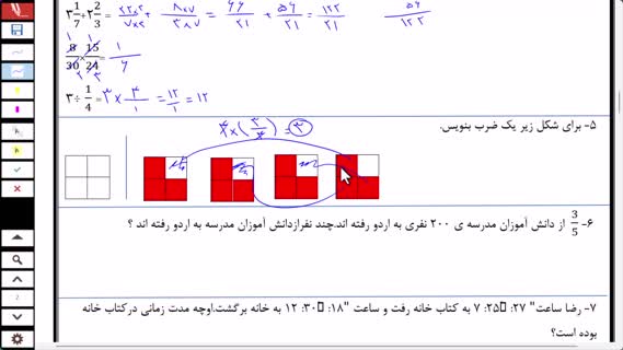 فیلم حل کاربرگ ضرب عددهای مخلوط ریاضی پنجم: صفحه 35 و 36