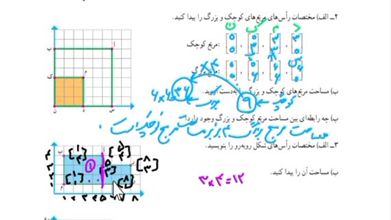 حل تمرین صفحه 79 ریاضی ششم: مختصات رأسها و مساحت اشکال