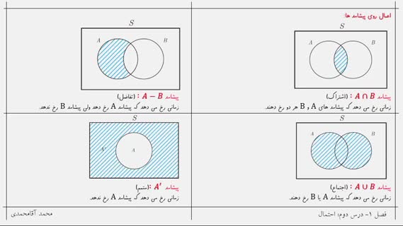 قسمت 4 - صفحه 15 تا 17 - فیلم آموزشی فصل 1 ریاضی و آمار دوازدهم انسانی | درس 2: احتمال (اعمال روی پیشامدها)