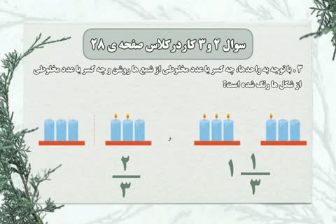 ریاضی کلاس چهارم، فصل2، صفحه 28، حل سوال 2 و 3 کار در کلاس، رسم شکل برای اعداد مخلوط