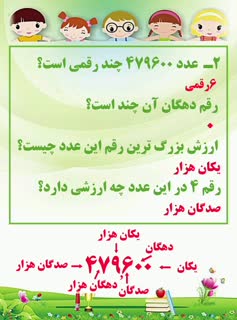 ریاضی کلاس چهارم، صفحه 20، تمرین 2، ارزش مکانی