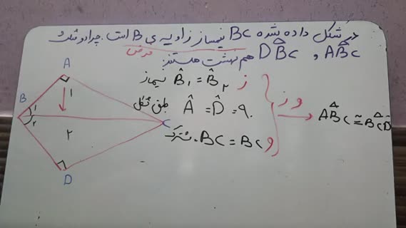 اثبات هم نهشتی مثلثهای قائم الزاویه با وتر مشترک