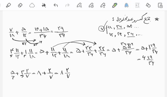 جمع کسر و عدد مخلوط