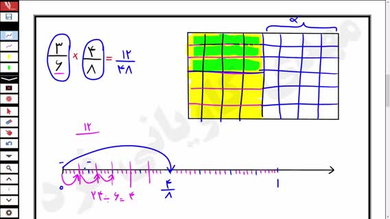 ضرب کسرها با روش رسم شکل و رسم محور | فصل دوم ریاضی ششم
