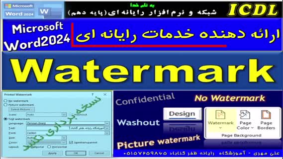 طراحی زمینه با Watermark در نرم افزار Word 2024 | تدریس درس ارائه دهنده خدمات رایانهای
