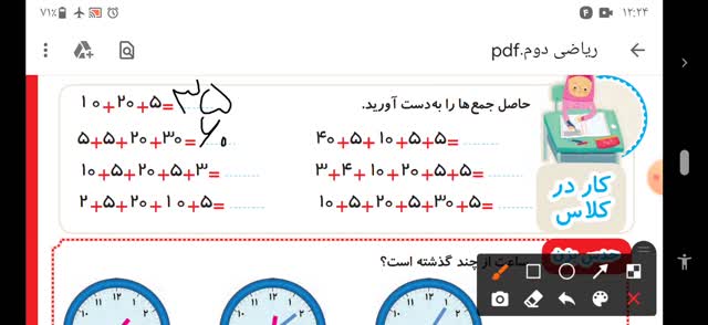 حل فعالیت و کاردرکلاس جمع چندتایی صفحه 11 ریاضی دوم دبستان