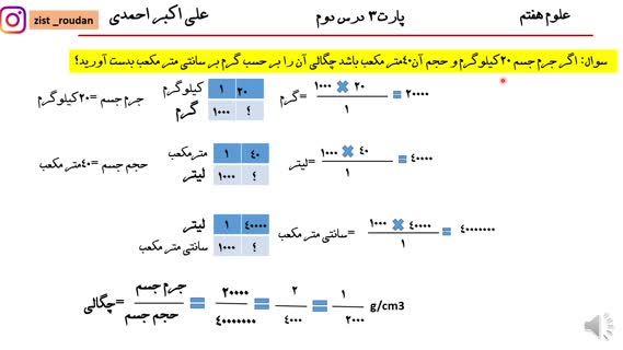 ویدیوی آموزشی علوم هفتم | تبدیل واحد و چگالی