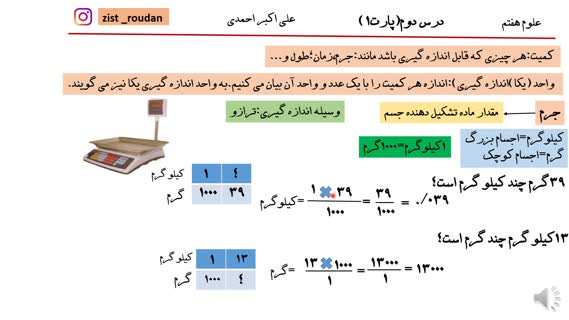 قسمت 1 - صفحه 6 تا 7 - تدریس کمیتهای جرم و وزن و تبدیل واحدهای آنها