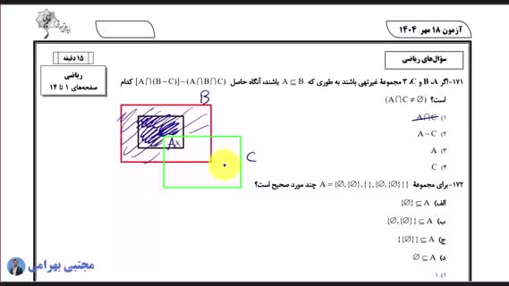 قسمت 1 - صفحه 2 تا 14 - حل آزمون 18 مهر 1404 قلم چی | صفحه 1 تا 14 ریاضی نهم