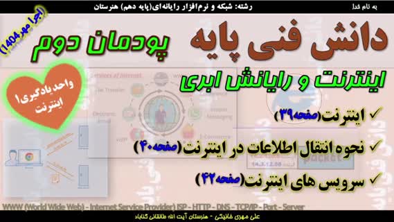 قسمت 1 - صفحه 39 تا 43 - تدریس پودمان 2 (واحد یادگیری 1: اینترنت) | دانش فنی پایه رشته شبکه و نرم افزار