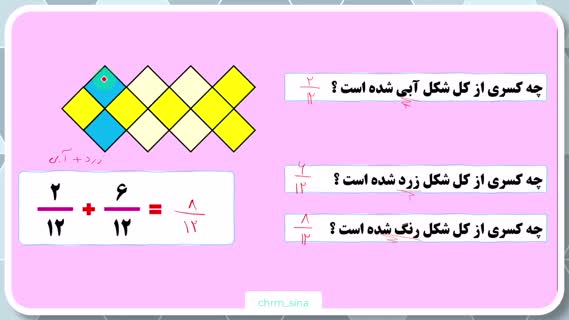قسمت 2 - صفحه 31 تا 33 - جمع کسرها روی شکل و محور