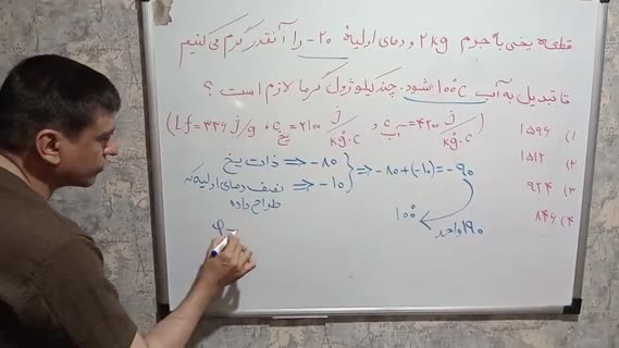 گرمای لازم برای تبدیل یخ 20- درجه به آب 100 درجه