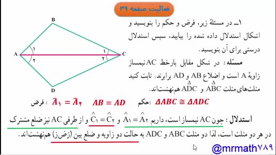 تدریس درس 2 فصل 3 ریاضی نهم: آشنایی با اثبات در هندسه