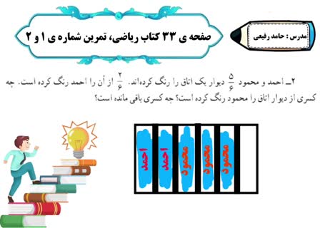 قسمت 2 - صفحه 33 - ریاضی کلاس چهارم، فصل2، صفحه 33، تمرین 1 و 2، مسئلههای کسر