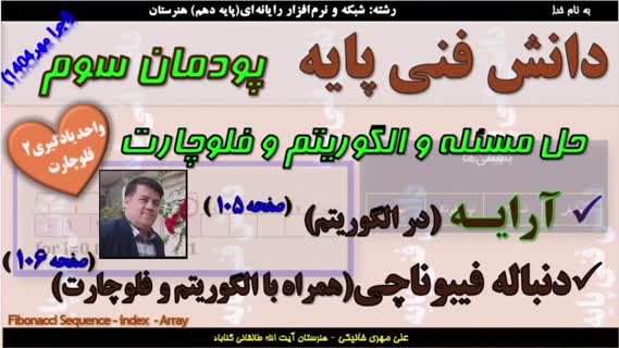 قسمت 8 - صفحه 105 تا 108 - واحد یادگیری 2 از پودمان سوم: آرایه و فعالیت الگوریتم اعداد فیبوناچی | دانش فنی پایه رشته شبکه و نرم…