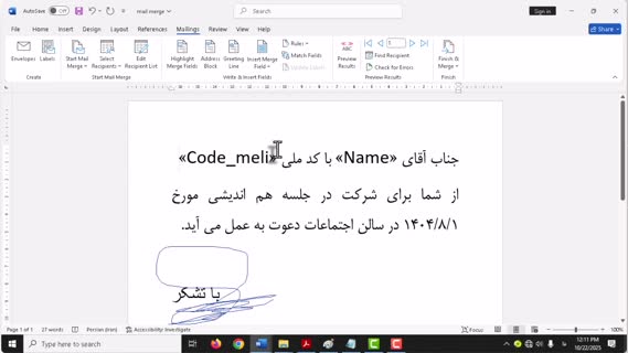 قسمت 23 - صفحه 32 تا 39 - مثال کاربردی از MailMerge در Word