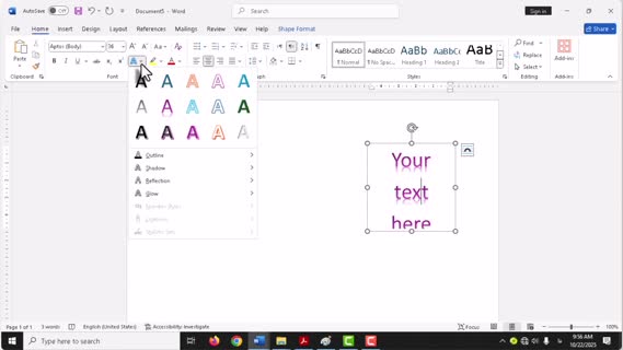 درج و تنظیمات شکلهای هندسی در Word