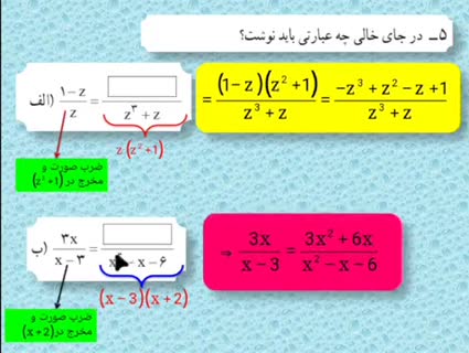 آموزش محاسبات عبارت های گویا ریاضی نهم