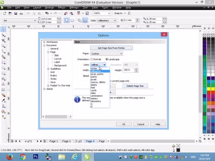 نوار ویژگیها و تنظیمات صفحه در کرل دراو