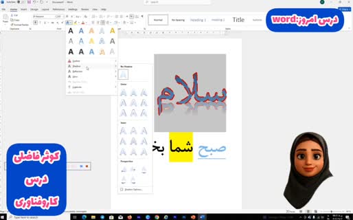 قسمت 4 - صفحه 13 تا 34 - تنظیمات افکتهای فونت در ورد